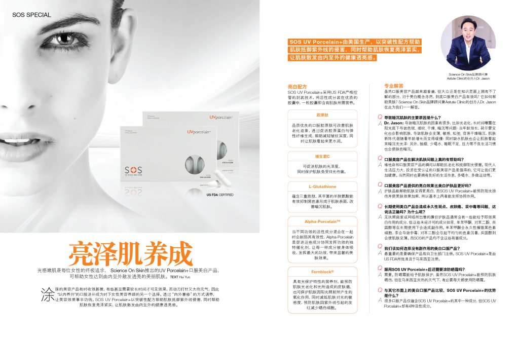Science On Skin Medikal Direktörü ve ünlü estetik doktoru Dr. Jason ile yapılan bir röportajın yanı sıra UV Porcelain+ hakkında bir medya özelliği.